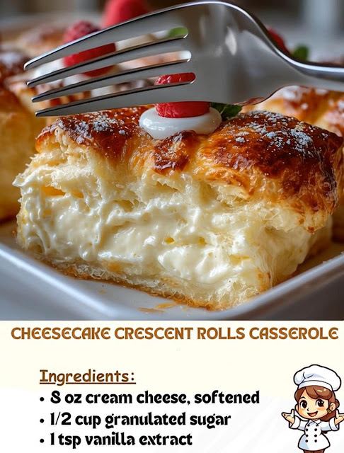 So, next time you want to impress guests or treat your family, bake this Cheesecake Crescent Rolls Casserole. You’ll create a memory, not just a meal — and once you taste it, you’ll know why it’s everyone’s favorite go-to dessert.