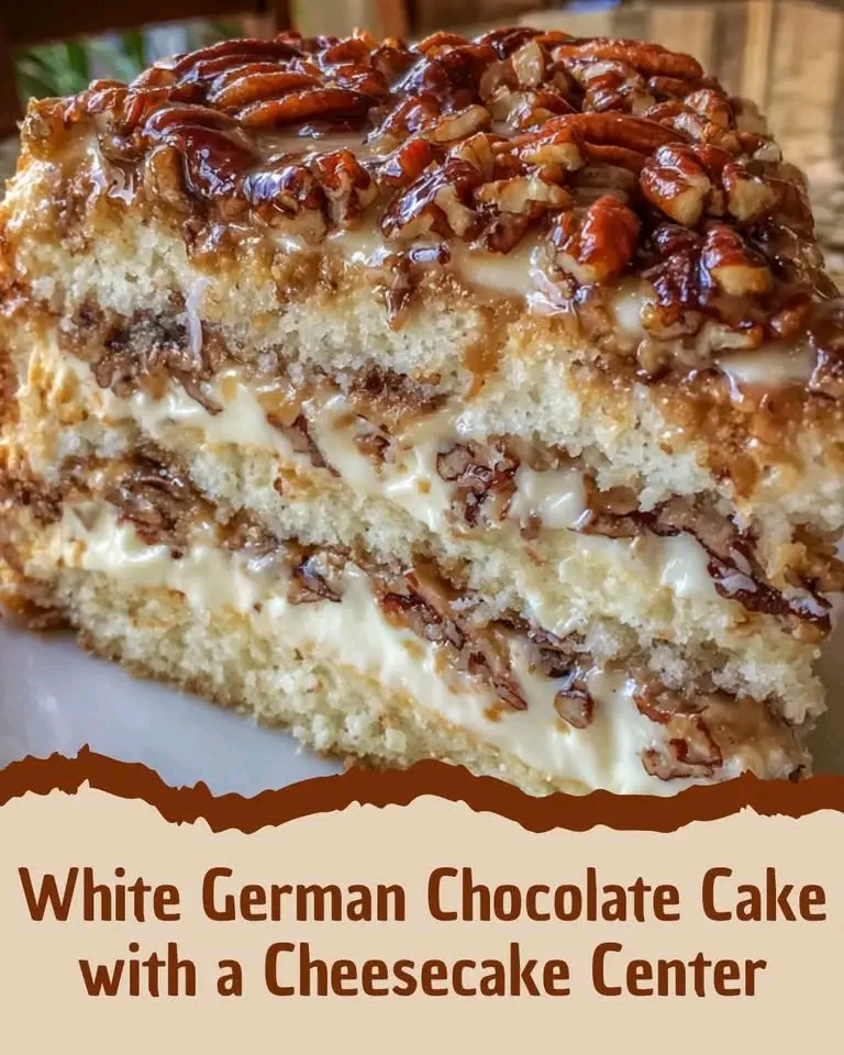 The White German Chocolate Cake with a Cheesecake Center is a masterpiece of flavor and texture—a dessert that captures the essence of indulgence. Imagine the soft, moist layers of delicate white cake embracing a luscious cheesecake center, all crowned with a rich, homemade coconut-pecan frosting. This cake is more than just a dessert; it’s an experience. Every bite blends creamy, nutty, and buttery notes that melt on your tongue. Perfect for birthdays, holidays, or any occasion when you want to wow your guests, this cake looks as beautiful as it tastes. Whether you’re an experienced baker or someone who loves trying new desserts, this White German Chocolate Cake with a Cheesecake Center will make you feel like a pastry chef in your own kitchen.