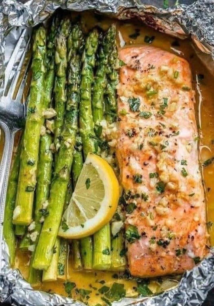 Whether you’re cooking for your family on a busy weeknight or entertaining guests for a special occasion, Baked Salmon in Foil with Asparagus and Garlic Lemon Butter Sauce is the kind of recipe that makes you look like a pro — without the stress. It’s light, flavorful, and ready in under 30 minutes, proving that gourmet food doesn’t have to be complicated.