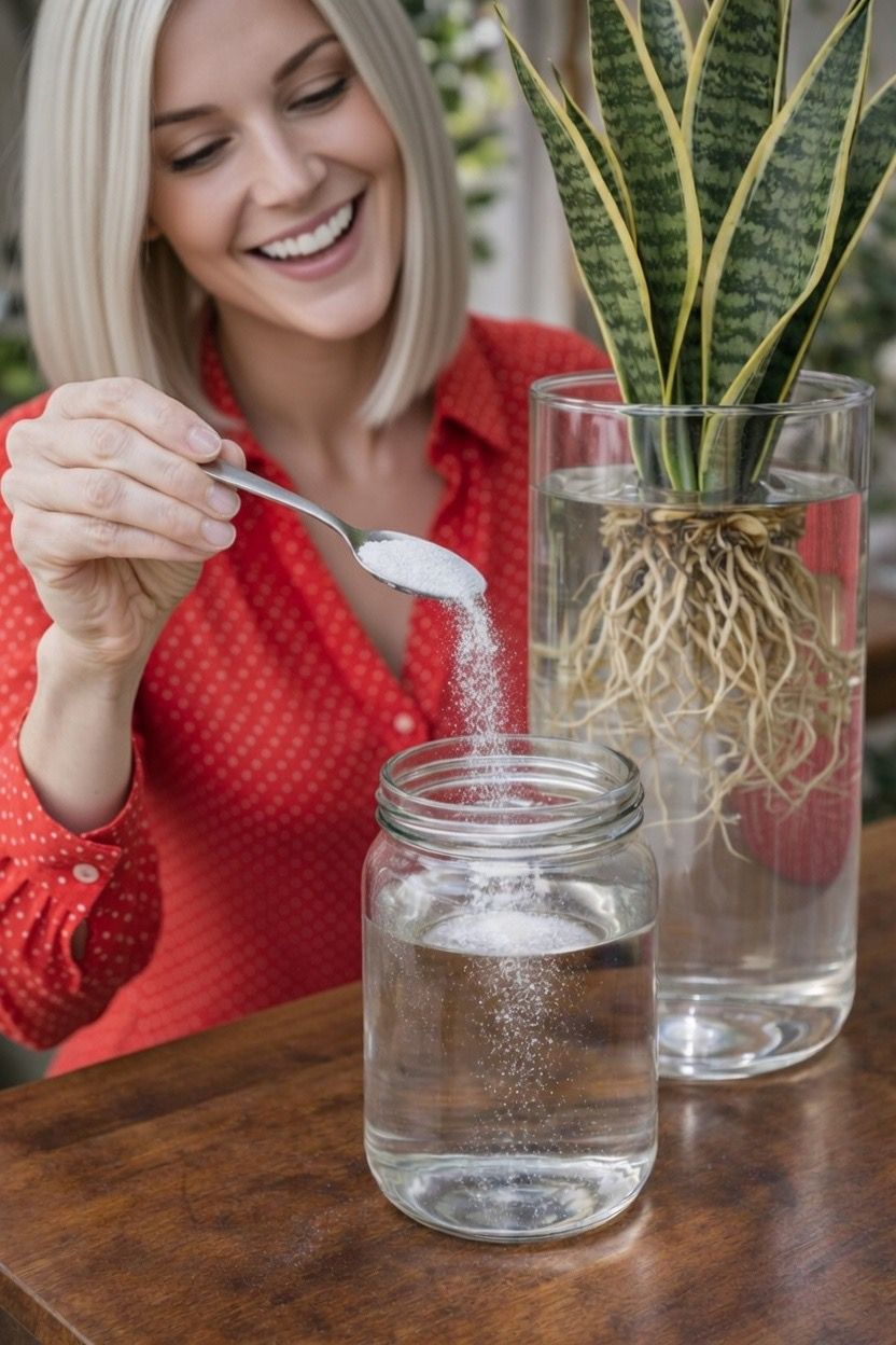 Water-grown Snake Plants are less about aggressive feeding and more about controlled simplicity. Clear containers, bright indirect light, and regular water refreshment matter far more than any white powder.